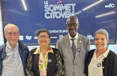 Abdoulaye Sene au Sommet citoyen. de Lille (juin 2025) avec Annie Levy-Mozzicconaci, Habiba Mejri-Cheikh et Jean-Claude Mairal, administrateurs de I-Dialogos