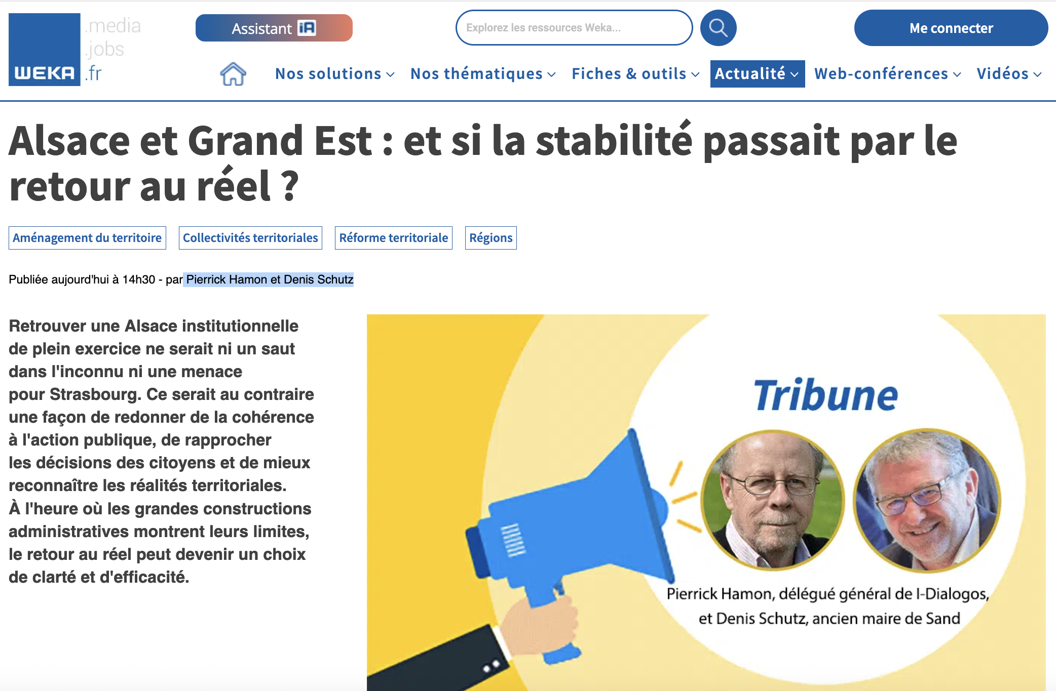 Pierrick Hamon est délégué général du think tank I-Dialogos International. Denis Schultz, est Conseiller d'Alsace et ancien maire de Sand et vice-président de la communauté de communes du canton d’Erstein.